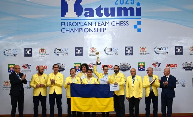 Winners of the 2025 European Team Chess Championship – Ukraine and Poland