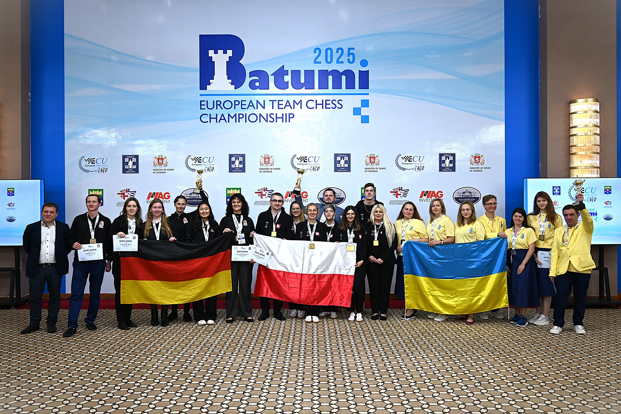 Winners of the 2025 European Team Chess Championship – Ukraine and Poland